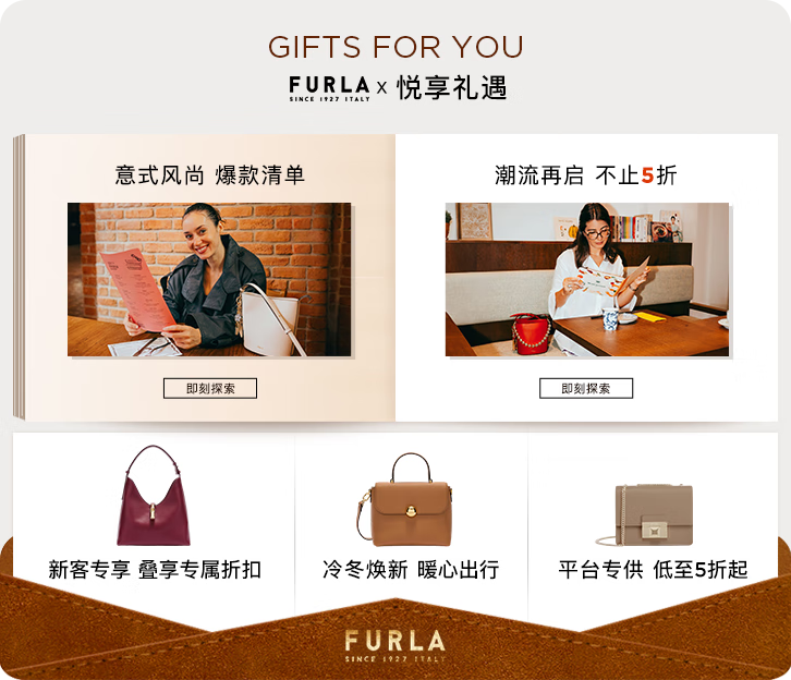芙拉(FURLA)【同价11.11】MOONLIGHT牛皮小号女士百搭休闲单肩斜挎包手提包 棕色