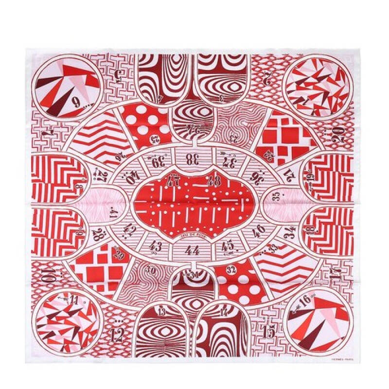 【二手99新】HERMES(爱马仕) 白色底粉色图案90丝巾二手奢侈配饰