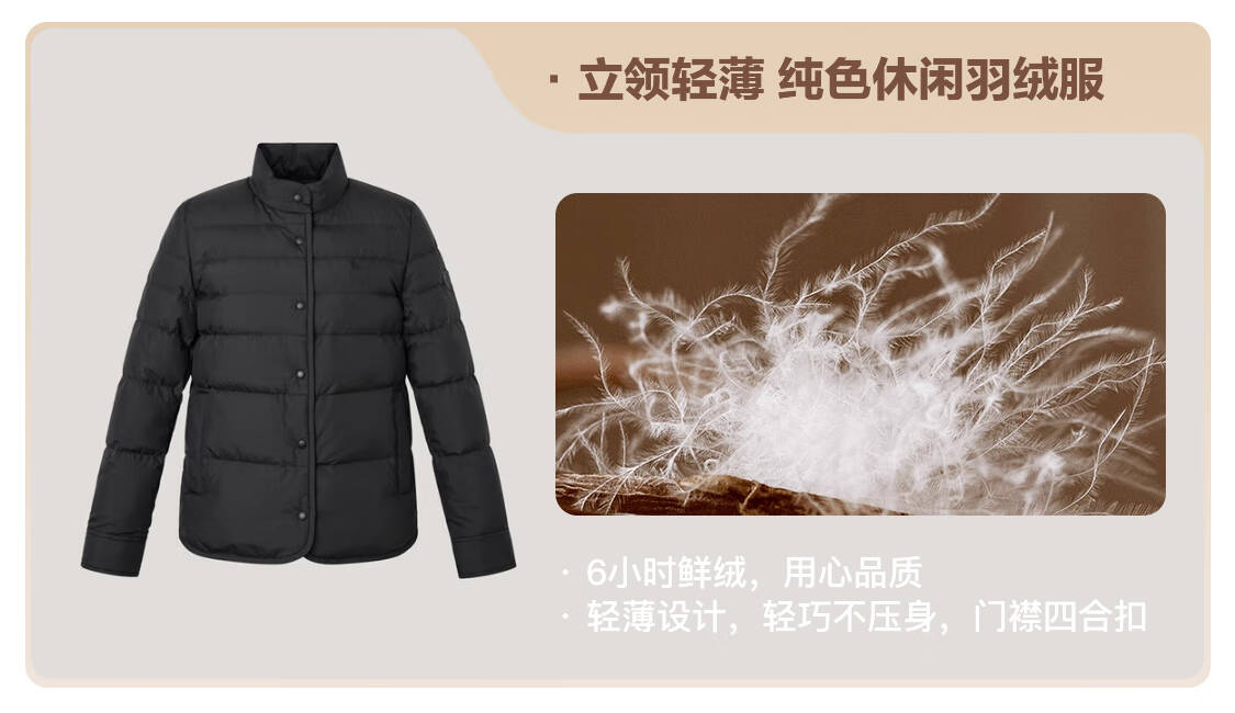 哈吉斯(HAZZYS)女装 2025秋季新款女士针梭相拼轻薄羽绒服女ASFSU0CCU35 深棕色DB M (160/84A 38)