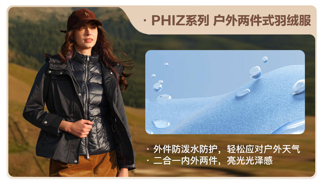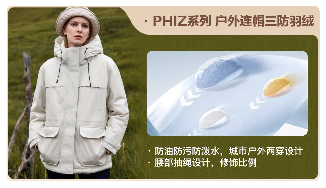 哈吉斯(HAZZYS)女装 冬季款女士【PHIZ系列】户外休闲连帽【三防】羽绒服 米黄色OW M (160/84A 38)