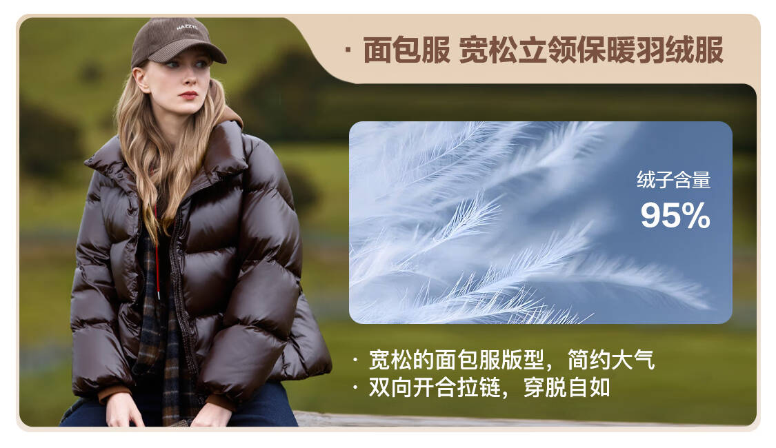 哈吉斯(HAZZYS)女装 2025冬季新款女士立领保暖短款羽绒服女ASFSU0CDU45 棕色BW M (160/84A 38)