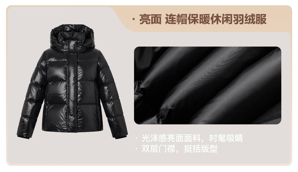 哈吉斯(HAZZYS)女装 冬季款女士外套亮面连帽保暖休闲羽绒服女ASFSU0CDF02 黑色BK L (165/88A 40)