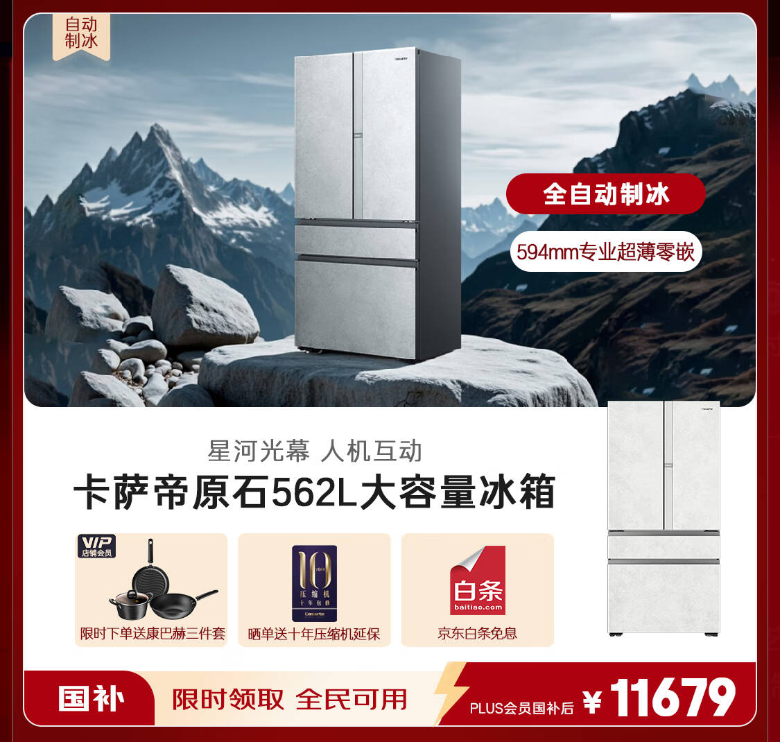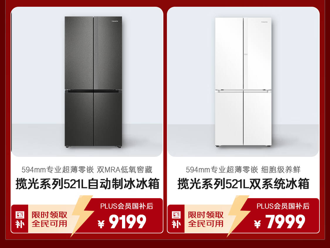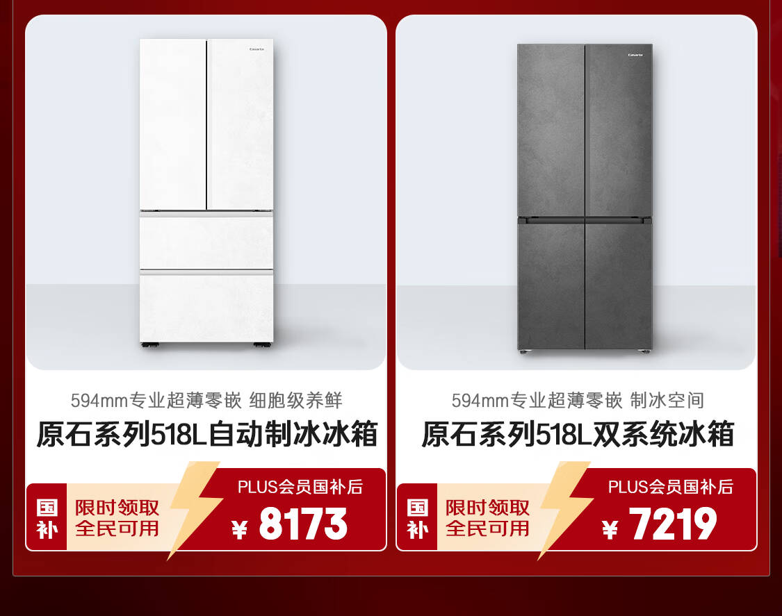 卡萨帝(Casarte)原石系列MRAPLUS低氧窖藏保鲜594MM超薄零嵌十字门家用电冰箱一级能效以旧换新BCD-518WGCTDM4GUU1
