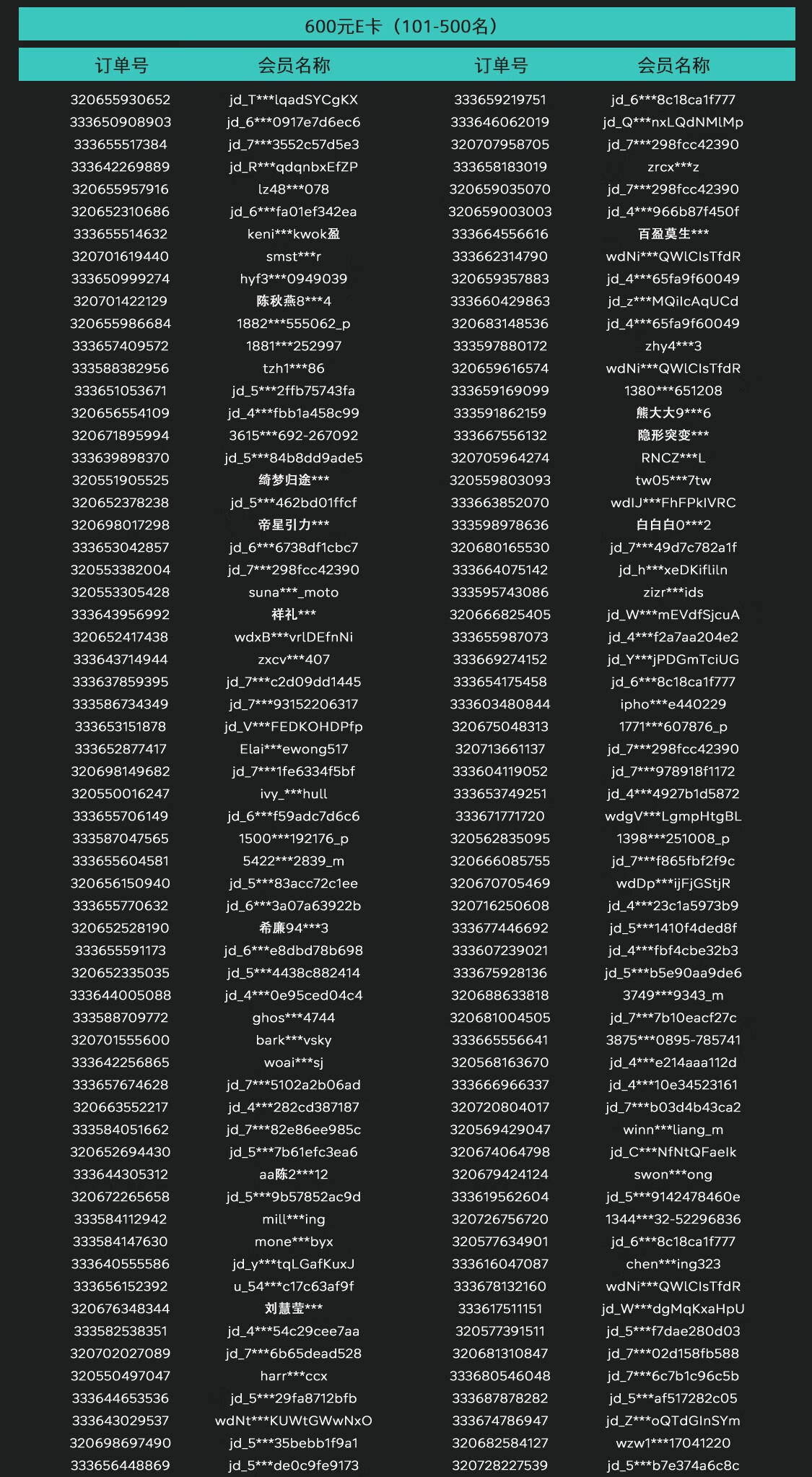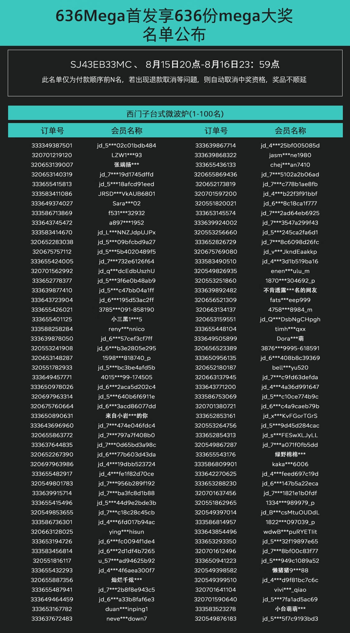 中奖名单